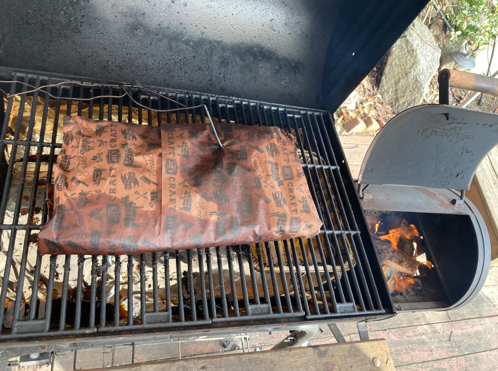 Here’s what I’ve learned since. For my smoker, the Chargriller Smokin’ Pro, a little less than half a chimney of hardwood lump charcoal and a small log split got the smoker up to about 275 degrees right off the bat. After it came down to about 225, I put another, smaller log on and it went up to about 260. When I started using even smaller log splits, the temperature would only spike to about 250-255, which is ideal for my purposes. Splits that were about 2-3 inches in diameter and 10-12 inches in length seemed to be just right for my smoker. One thing to keep in mind is that the smaller the log, the more frequently you have to replace it. So, as per usual, you need to keep a close eye on the fire. Check it every 20-30 minutes or so for temperature and quality of smoke. Having a digital thermometer at grate level makes this much easier. This is a really good one. You can monitor the temp while inside your house if you have the kind with a remote, which can be a plus when smoking in inclement weather or in winter. And, as I stated in my last post, you can’t trust the analog thermometers mounted on most grills. They are almost never at grate level, so they can be 50-75 degrees off the readings at grate level. That much of a difference can ruin the meat! You can install analog thermometers at grate level yourself if you like, but I find it’s just easier to use a digital one.